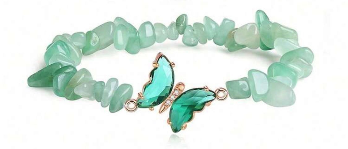 ✨ Elegancka i wyjątkowa bransoletka wykonana z naturalnych kamieni awenturynu, ozdobiona subtelnym motylem. To idealny dodatek dla osób ceniących naturalne materiały, elegancję oraz unikalną biżuterię.