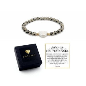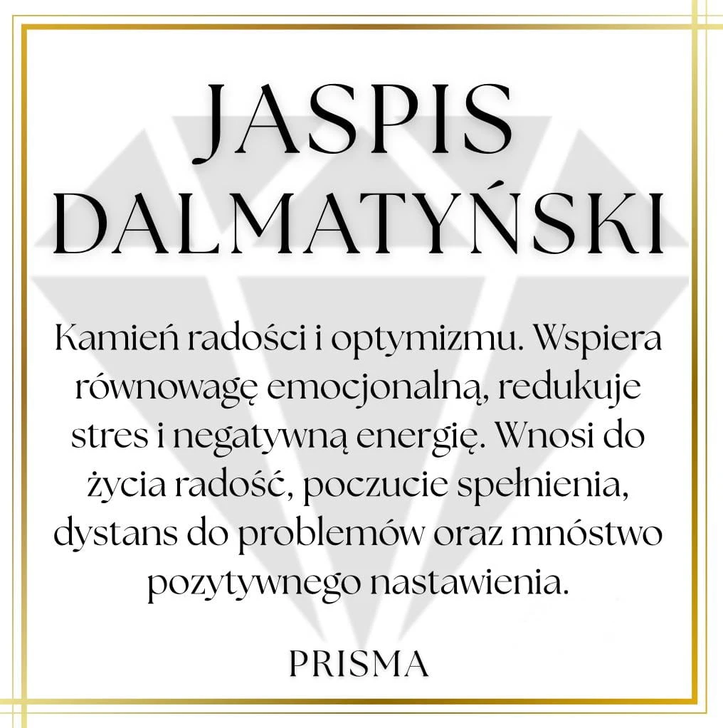 • JASPIS DALMATYŃSKI wyróżnia się charakterystycznym wzorem przypominającym umaszczenie dalmatyńczyka - jasny kamień z nieregularnymi kropeczkami sprawia, że każda bransoletka jest niepowtarzalna.
