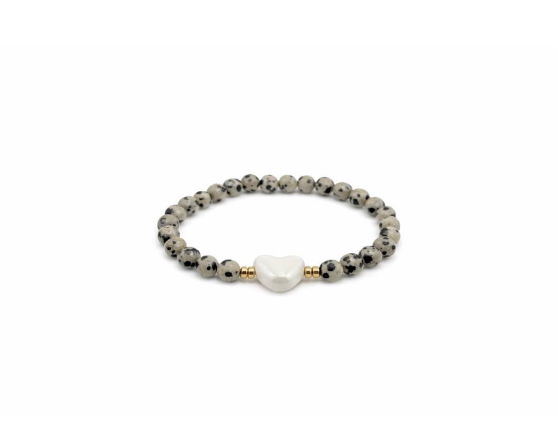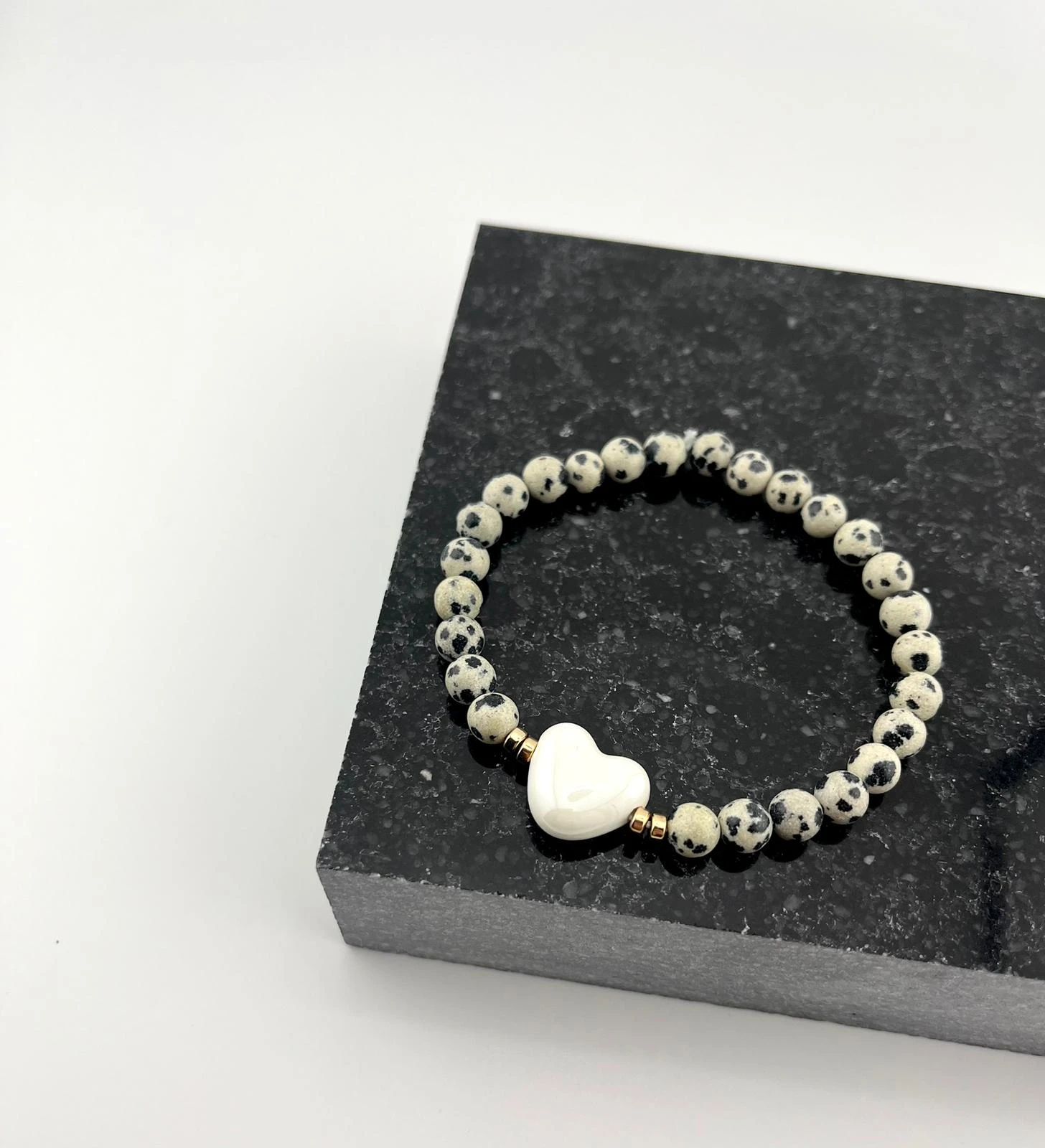 BRANSOLETKA Z JASPISU DALMATYŃSKIEGO Z PORCELANOWYM SERCEM