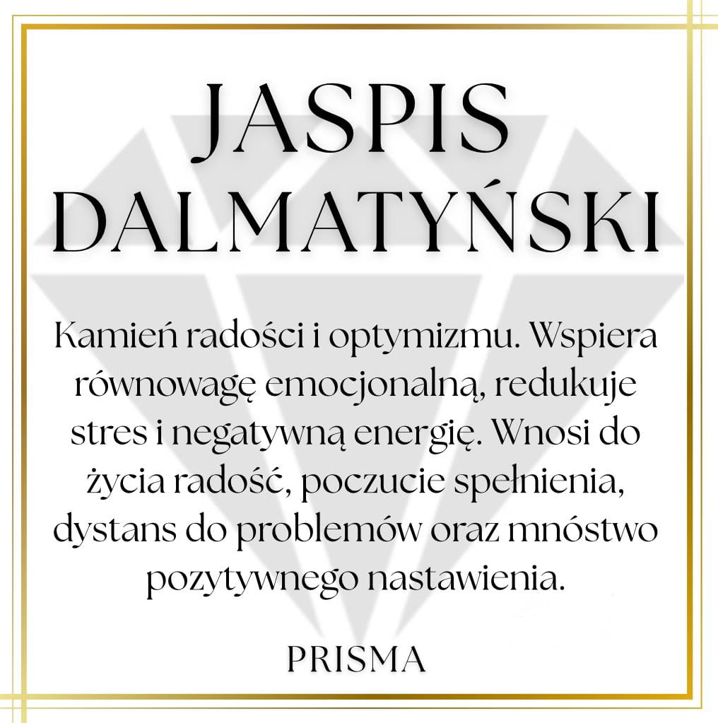 - JASPIS DALMATYŃSKI wyróżnia się charakterystycznym wzorem przypominającym umaszczenie dalmatyńczyka - jasny kamień z nieregularnymi kropeczkami sprawia, że każda bransoletka jest niepowtarzalna.