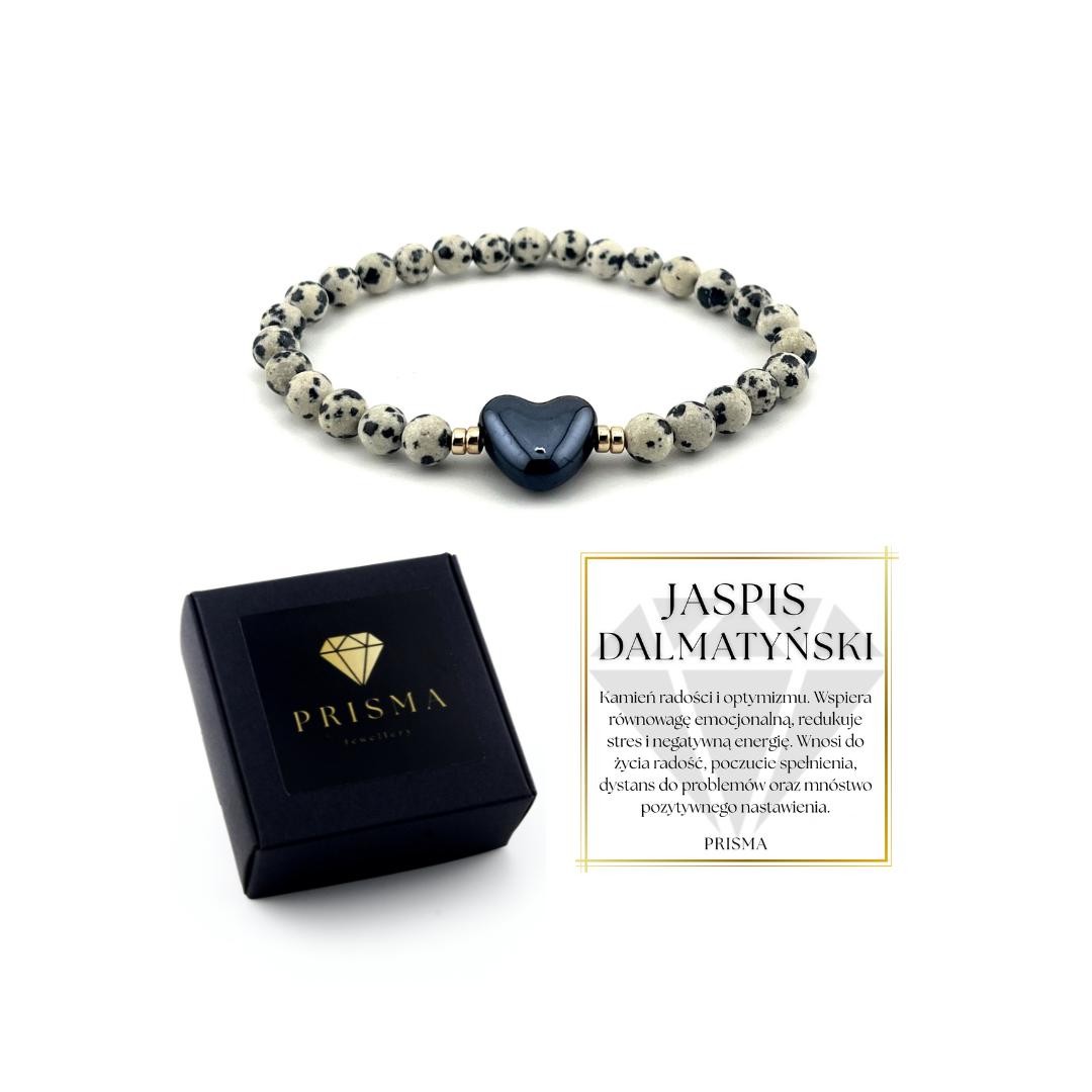 Bransoletka JASPIS DALMATYŃSKI serce kamienie naturalne