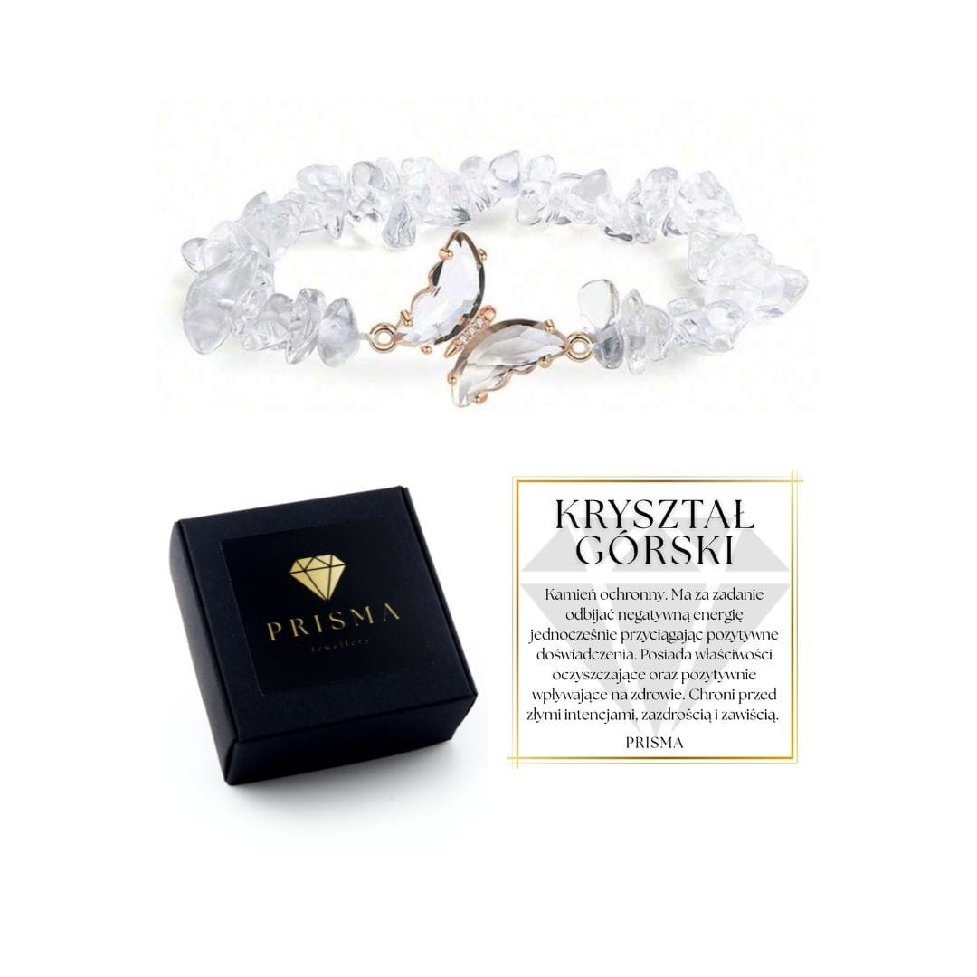 BRANSOLETKA Z KRYSZTAŁU GÓRSKIEGO Z MOTYLEM