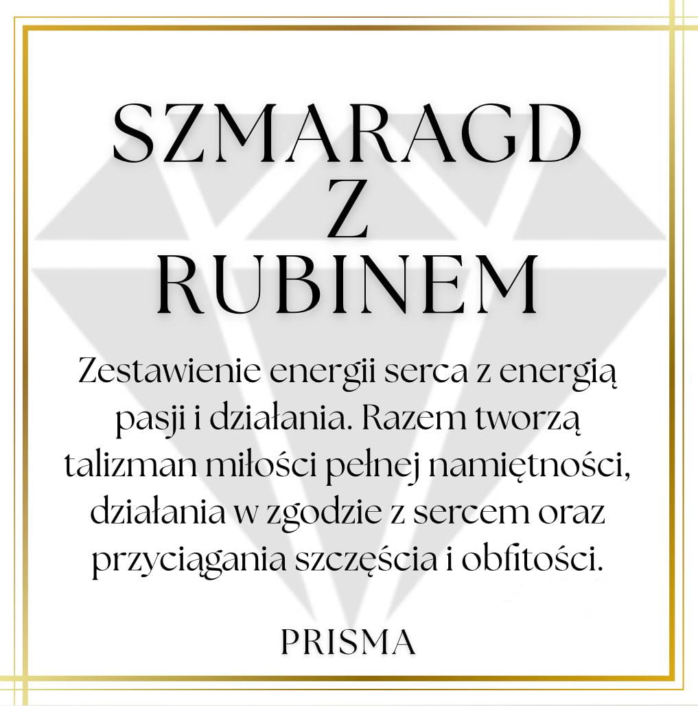 Wyjątkowe połączenie szmaragdu i rubinu tworzy biżuterię o silnej, ale zrównoważonej energii. To duet, który łączy delikatność uczuć z mocą działania.