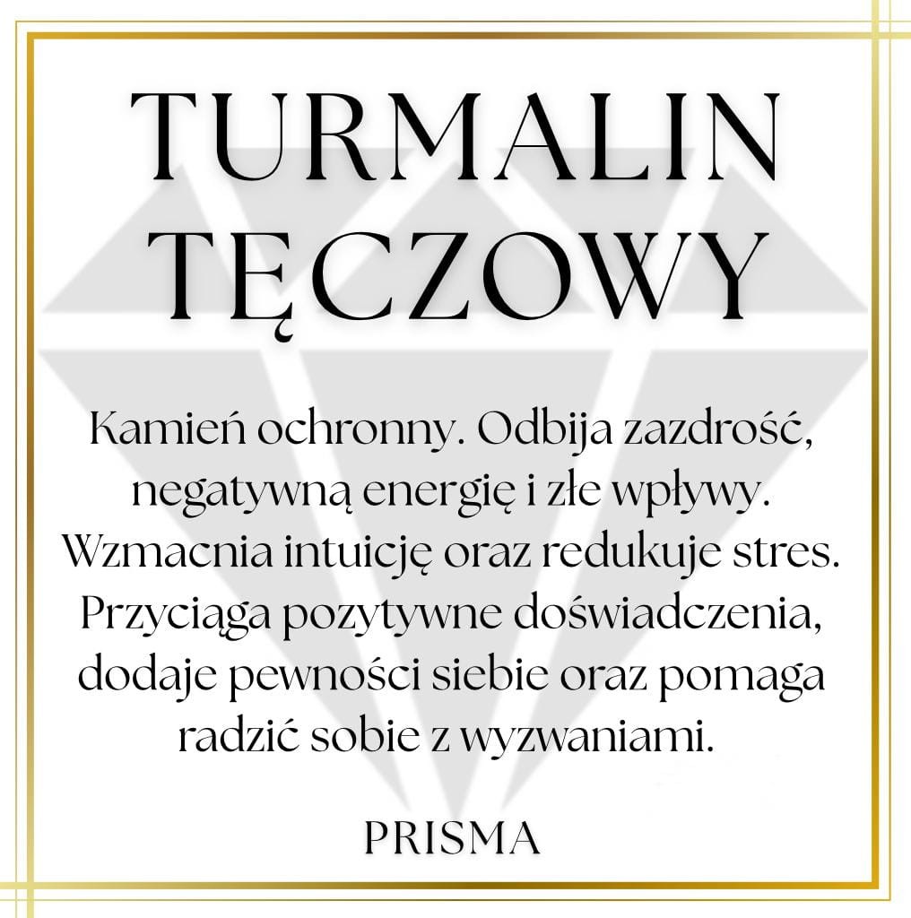 Turmalin to kamień ochronny, skutecznie odcinający negatywną energię oraz złe wpływy - zamieniając je na pozytywną energię. Odbija zazdrość i złe intencje. Wzmacnia intuicję oraz redukuje stres. Przyciąga pozytywne doświadczenia, dodaje pewności siebie oraz pomaga radzić sobie z wyzwaniami.