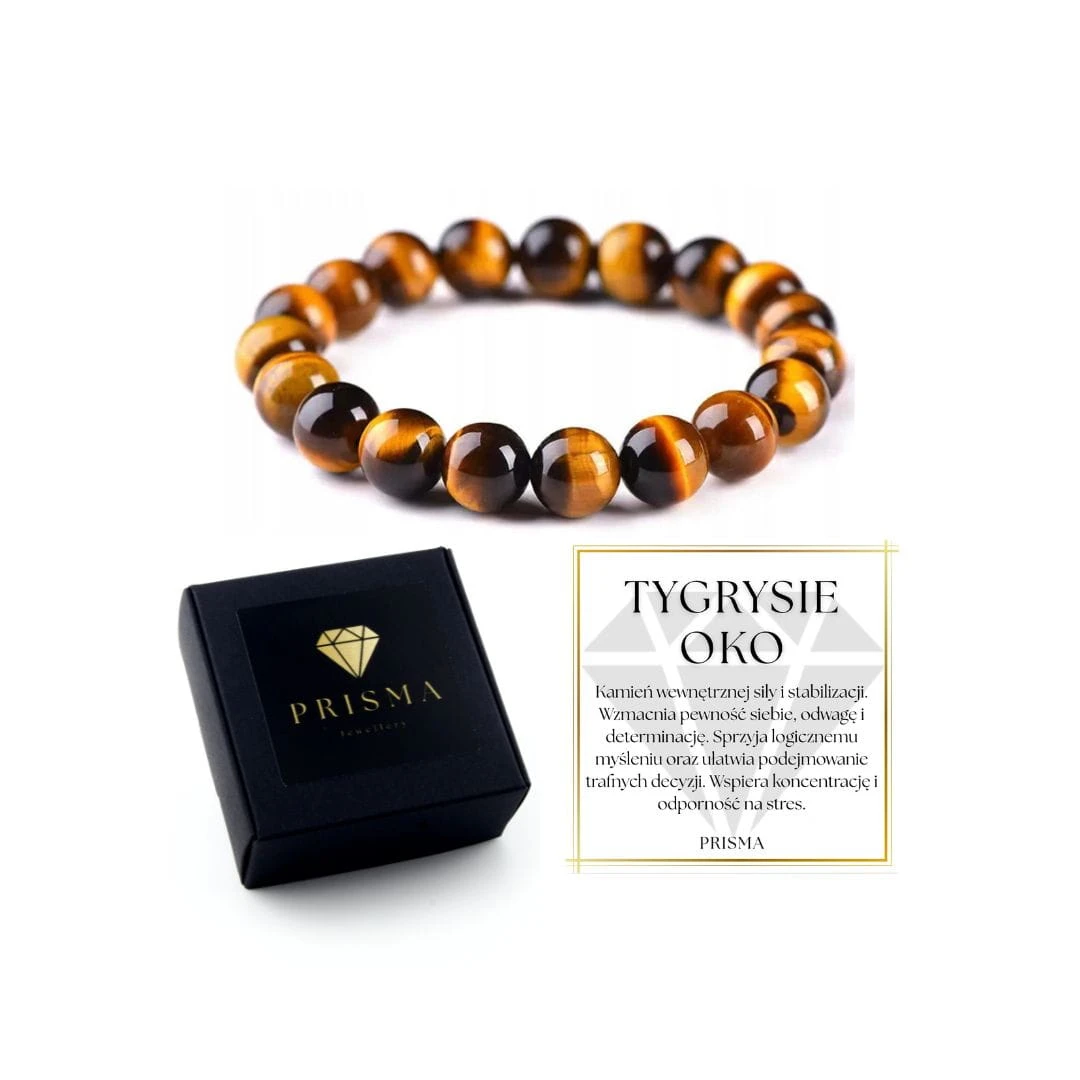 Tygrysie oko to kamień wewnętrznej siły i stabilizacji. Wzmacnia pewność siebie, odwagę i determinację. Sprzyja logicznemu myśleniu oraz ułatwia podejmowanie decyzji. Wspiera koncentrację i odporność na stres.
