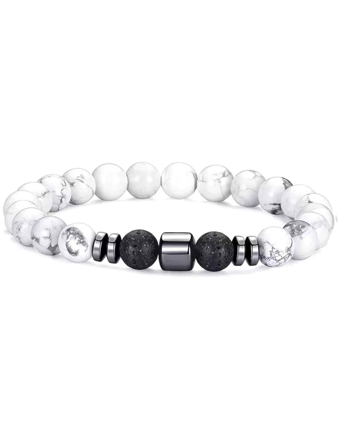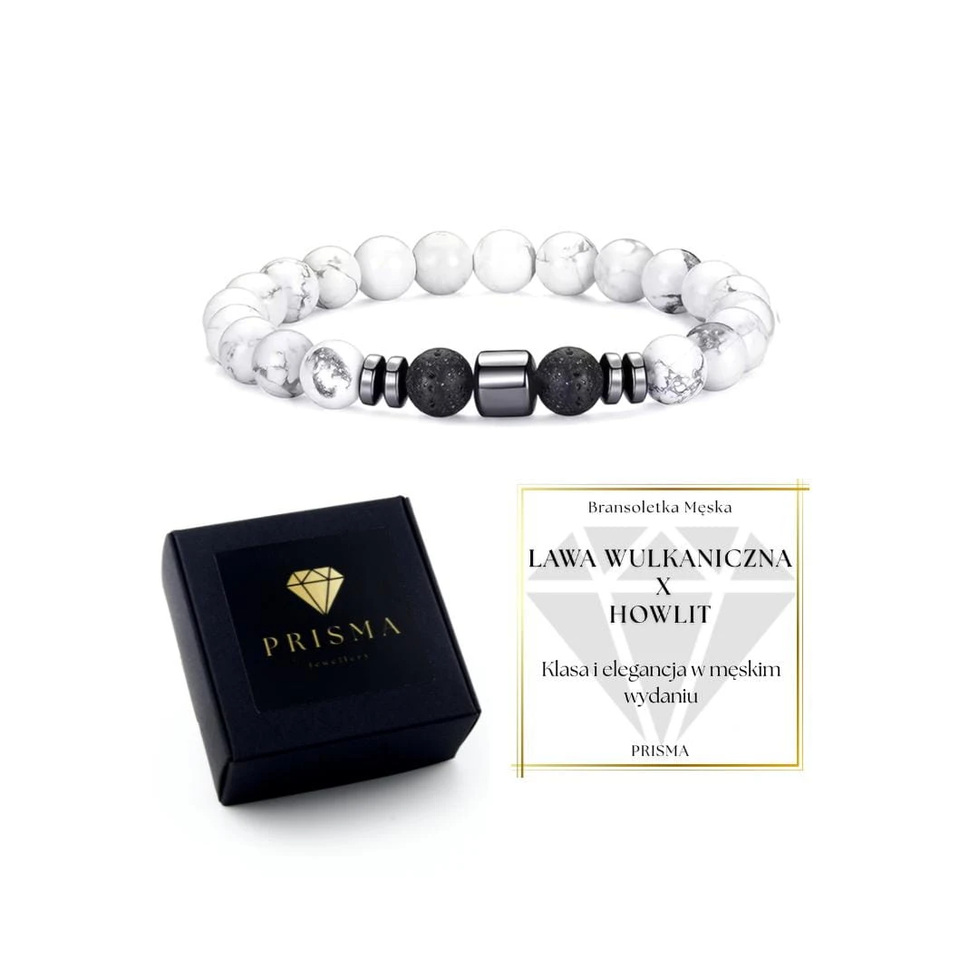 NOWOCZESNA BRANSOLETKA MĘSKA Z LAWY WULKANICZNEJ I HOWLITU