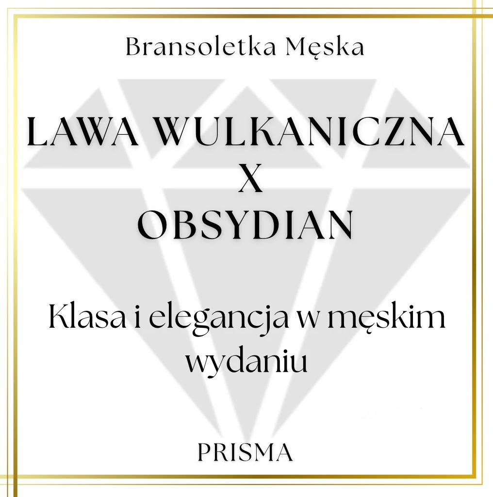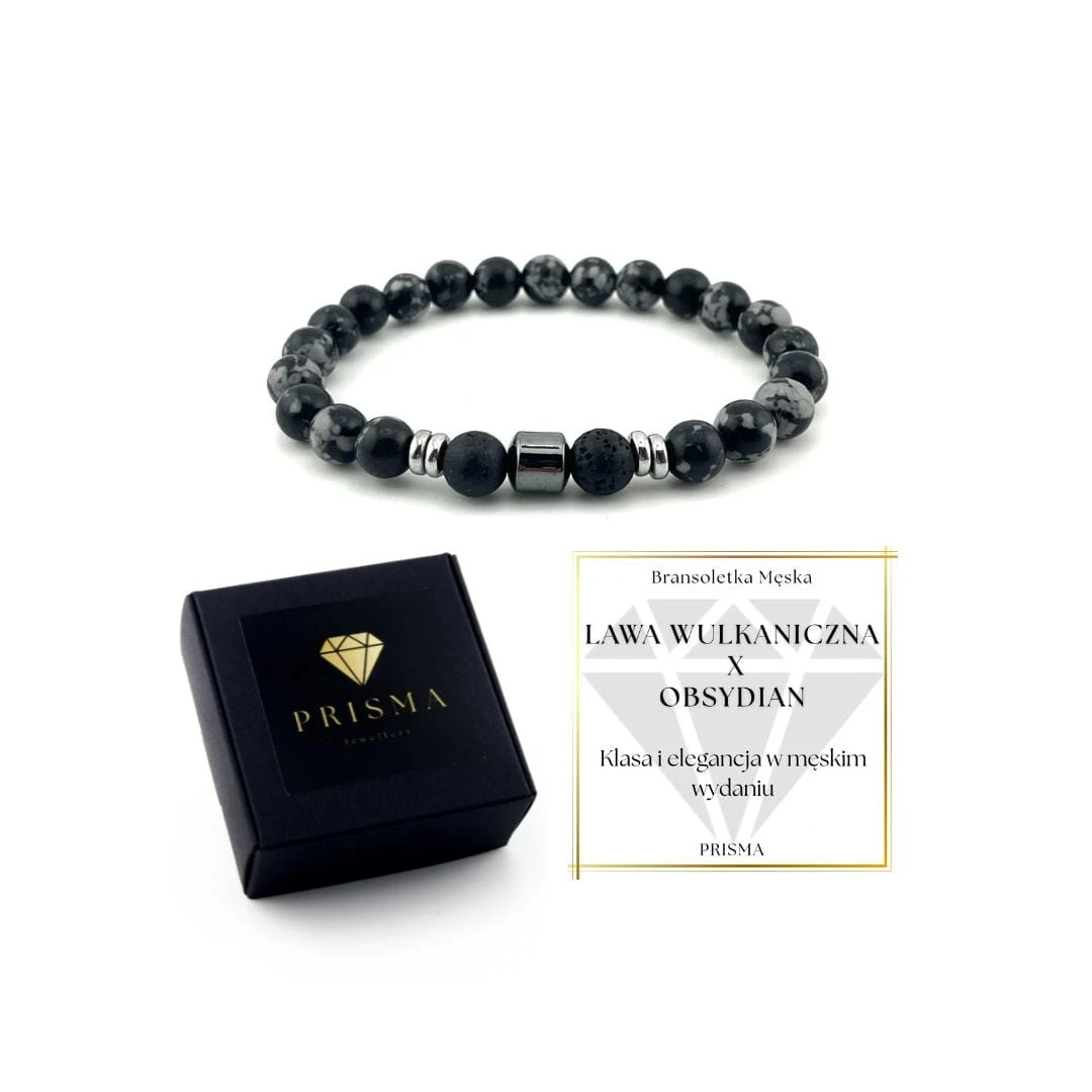 Bransoletka męska LAWA WULKANICZNA / OBSYDIAN kamienie naturalne
