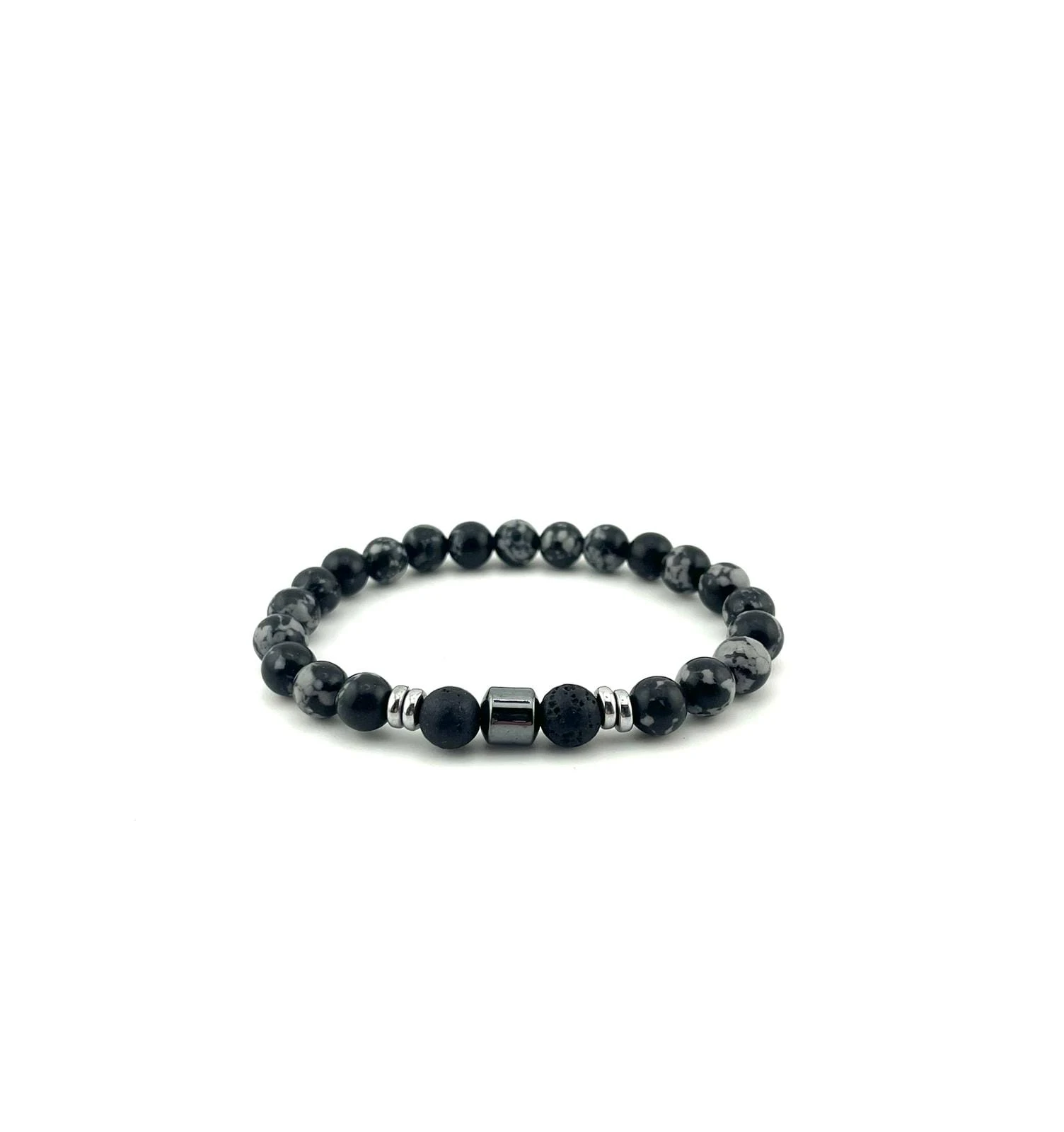 NOWOCZESNA BRANSOLETKA MĘSKA Z LAWY WULKANICZNEJ I OBSYDIANU