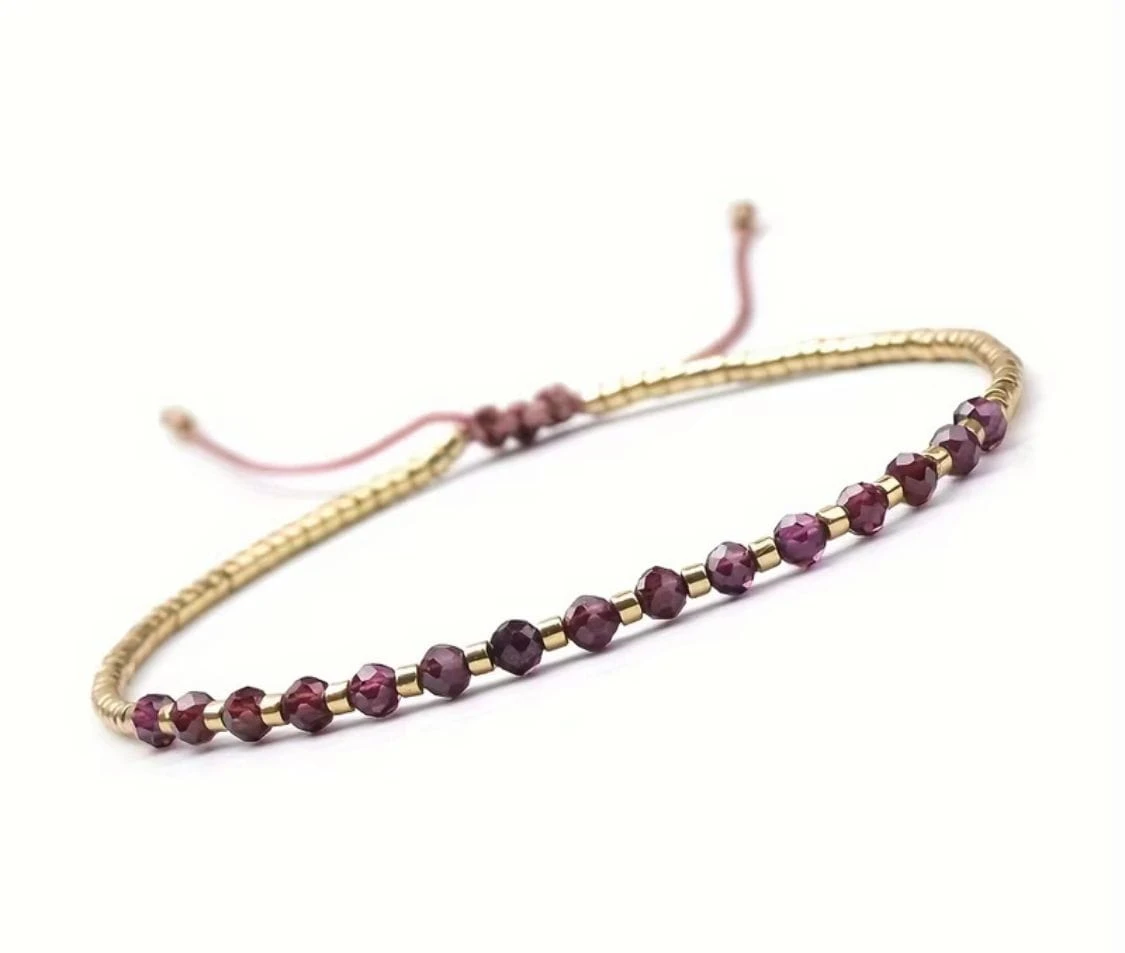 DELIKATNA BRANSOLETKA REGULOWANA NA NICI JEDWABNEJ Z GRANATEM