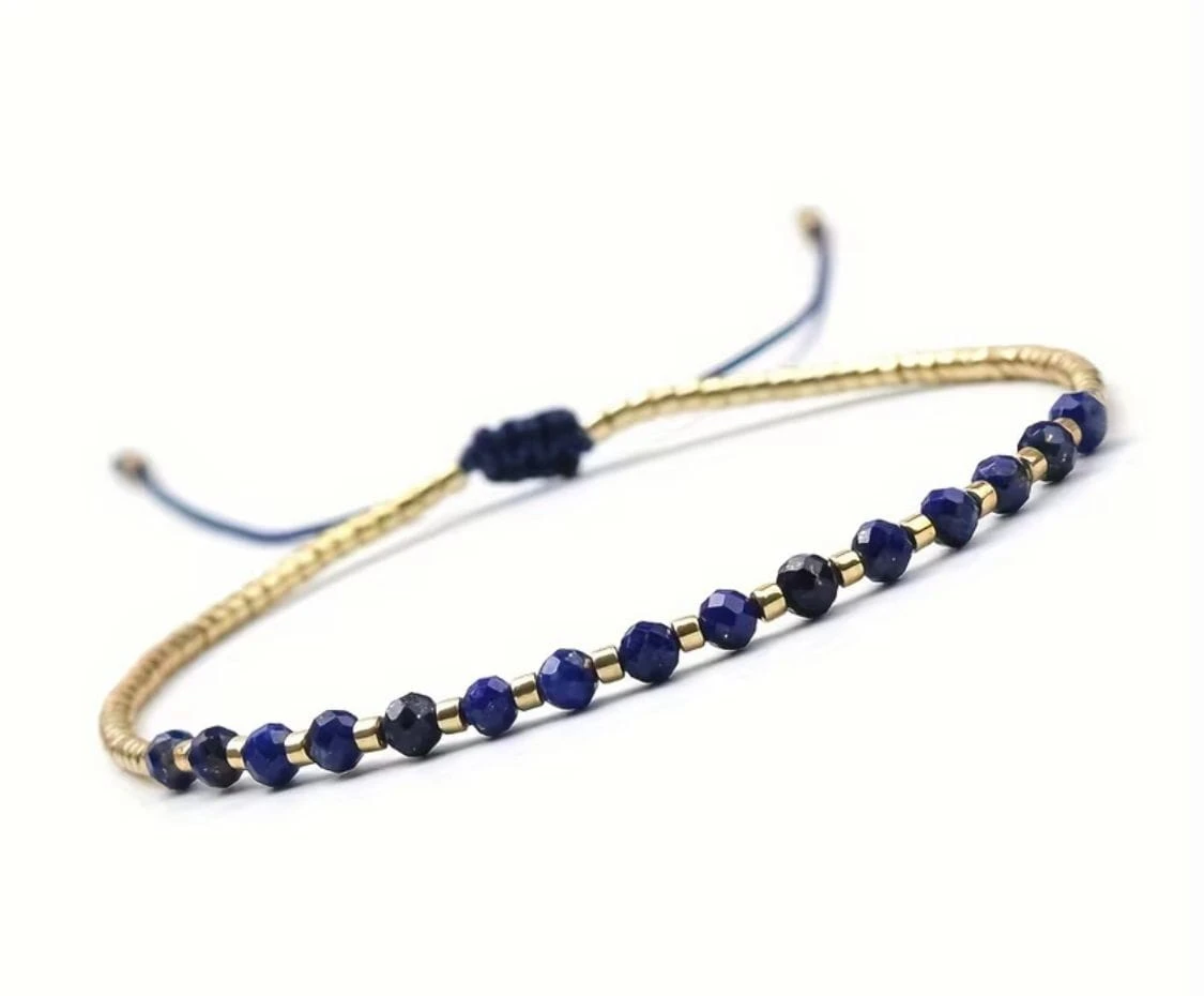 DELIKATNA BRANSOLETKA REGULOWANA NA NICI JEDWABNEJ Z LAPISEM LAZULI