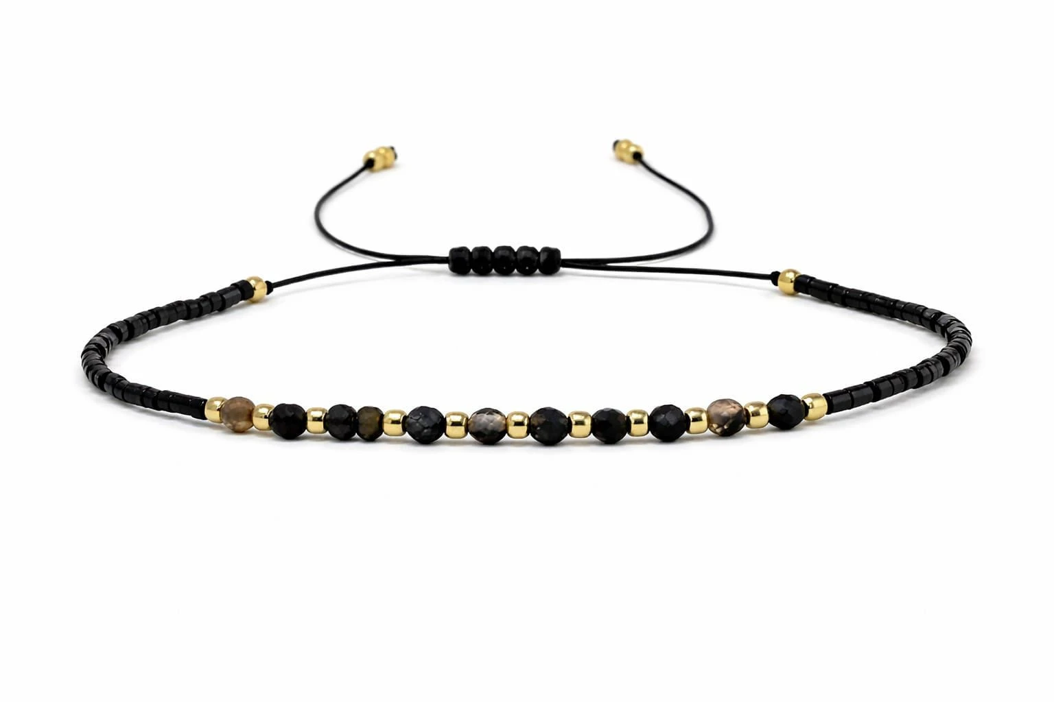 DELIKATNA BRANSOLETKA REGULOWANA NA NICI JEDWABNEJ Z TURMALINEM CZARNYM