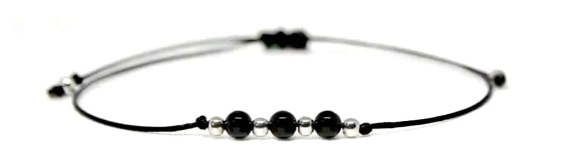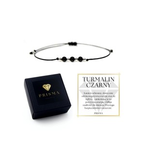DELIKATNA BRANSOLETKA REGULOWANA NA NICI JEDWABNEJ Z TURMALINEM CZARNYM