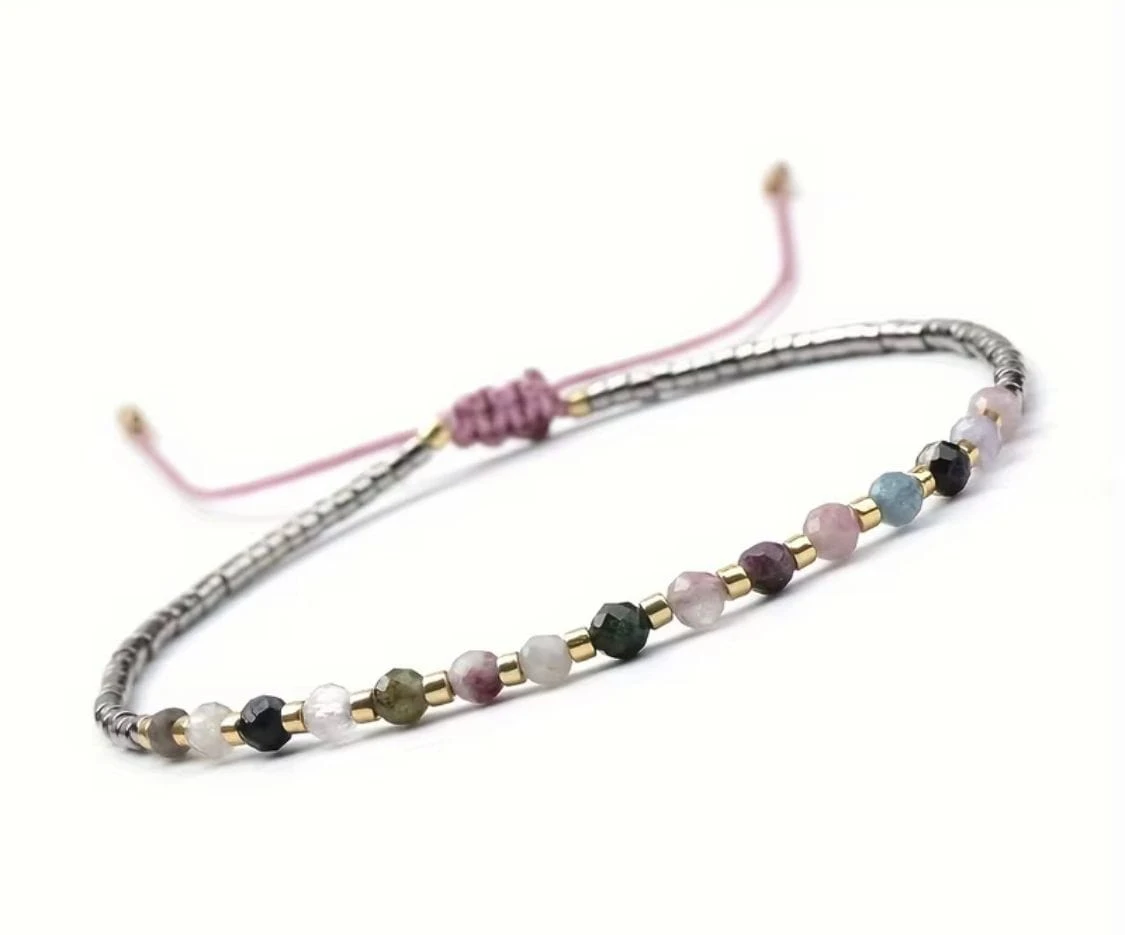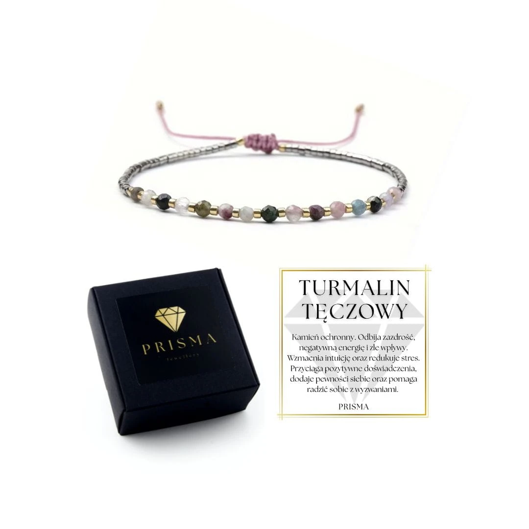 DELIKATNA BRANSOLETKA REGULOWANA NA NICI JEDWABNEJ Z TURMALINEM TĘCZOWYM