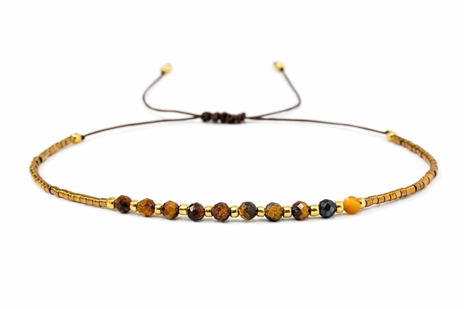 DELIKATNA BRANSOLETKA REGULOWANA NA NICI JEDWABNEJ Z TYGRYSIM OKIEM