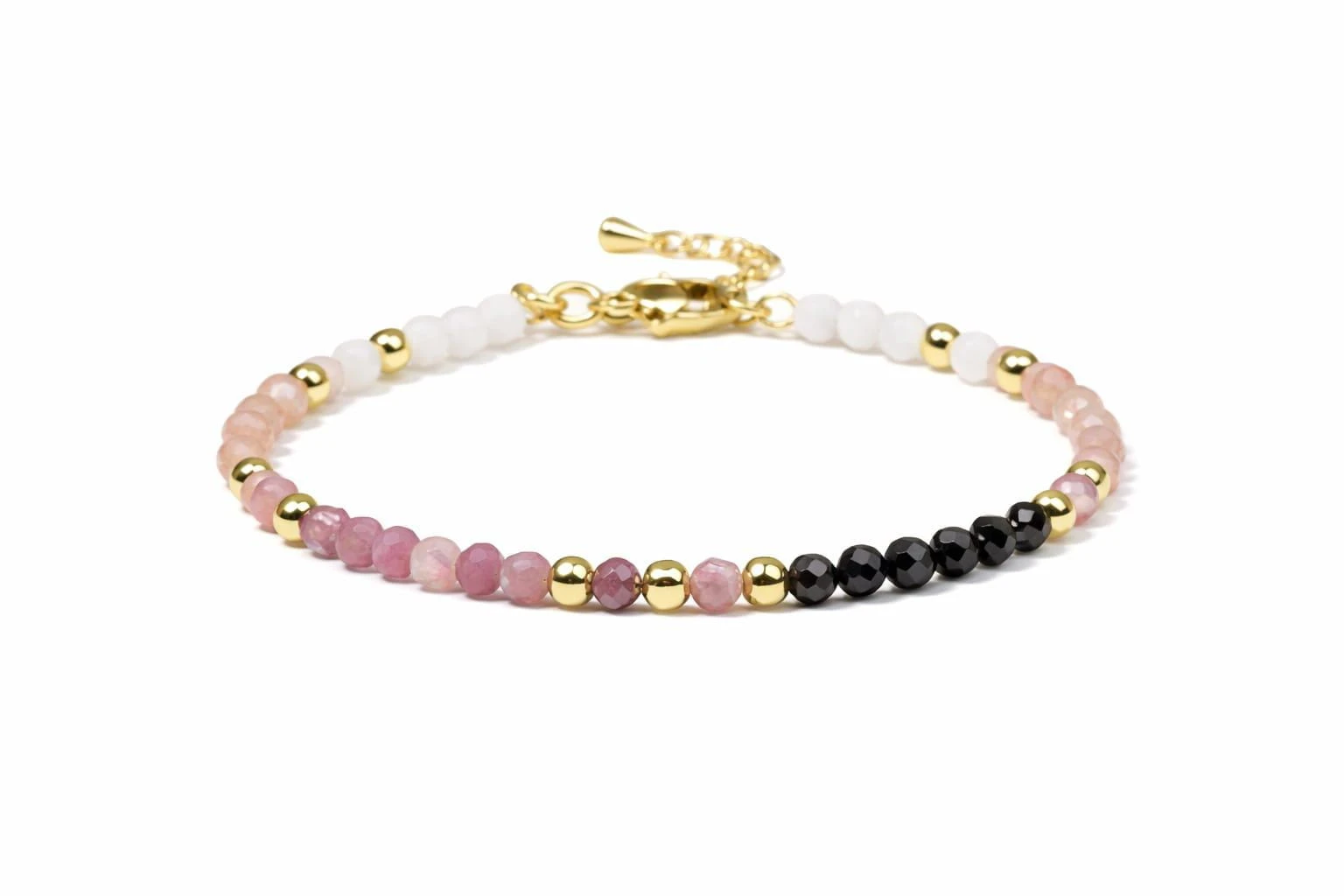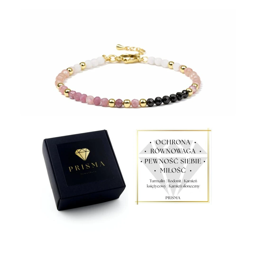 Bransoletka szczęścia RODONIT / TURMALIN / KAMIEŃ KSIĘŻYCOWY / KAMIEŃ SŁONECZNY kamienie naturalne