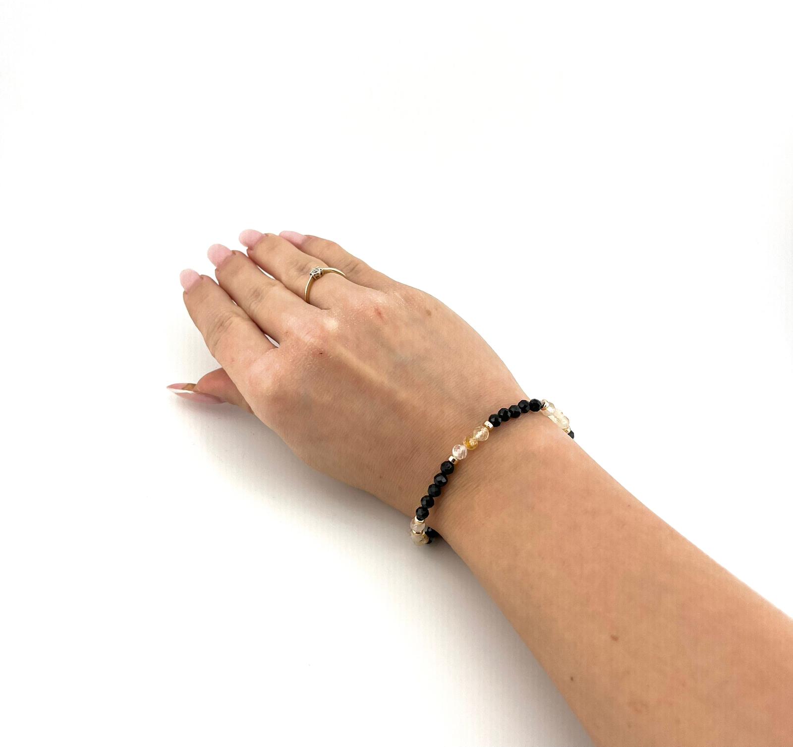 Odkryj wyjątkową bransoletkę - talizman z naturalnych kamieni - cytrynu i turmalinu, stworzoną dla osób, które chcą połączyć piękną biżuterię z symboliczną energią natury.
