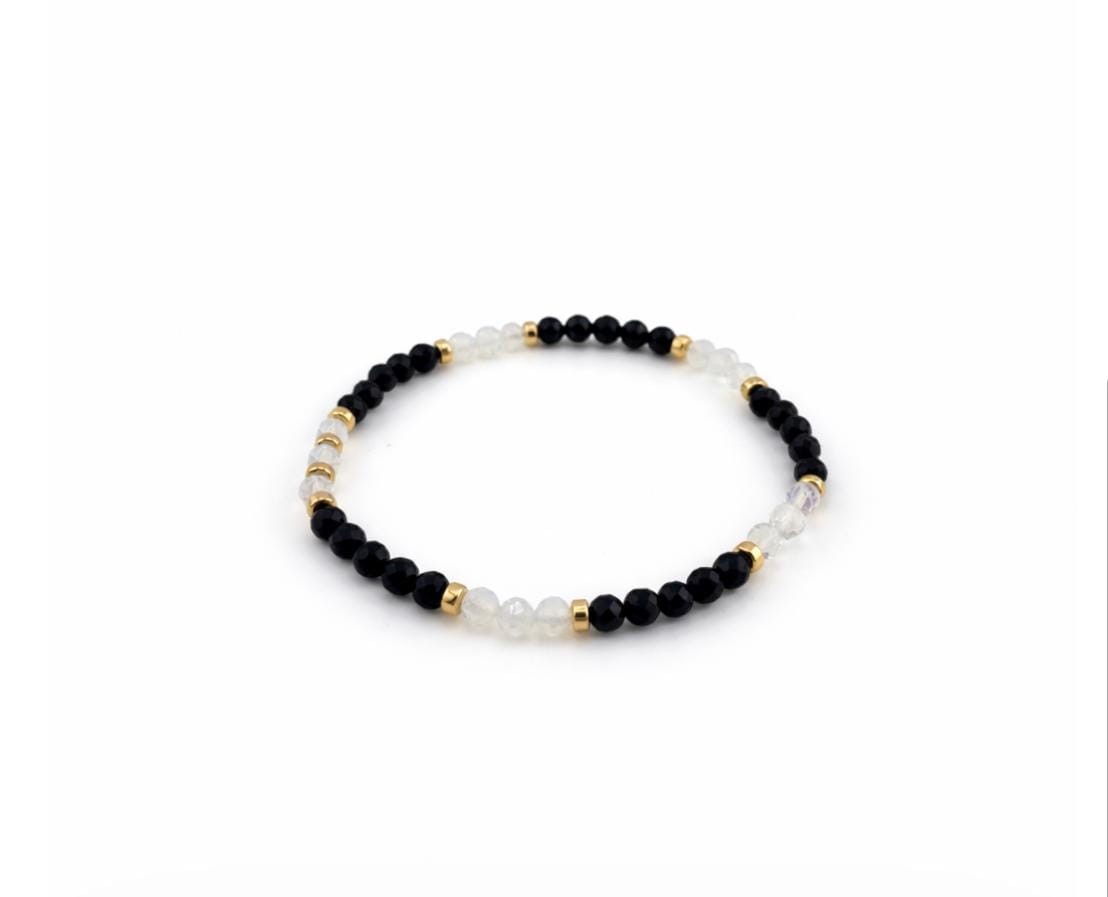 Odkryj wyjątkową bransoletkę - talizman z naturalnych kamieni - kamienia księżycowego i turmalinu, stworzoną dla osób, które chcą połączyć piękną biżuterię z symboliczną energią natury.