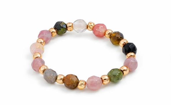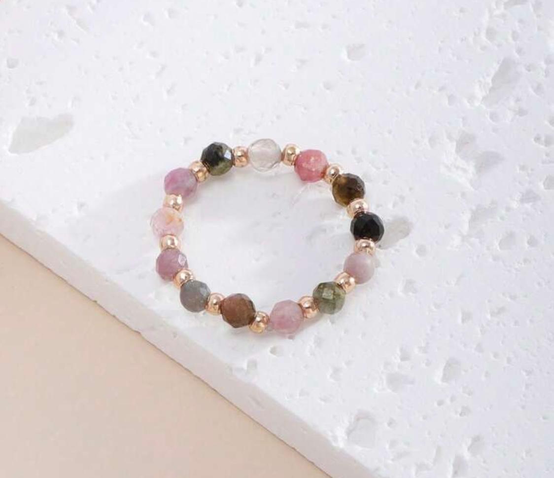 ELASTYCZNY PIERŚCIONEK Z KAMIENI NATURALNYCH - TURMALIN TĘCZOWY